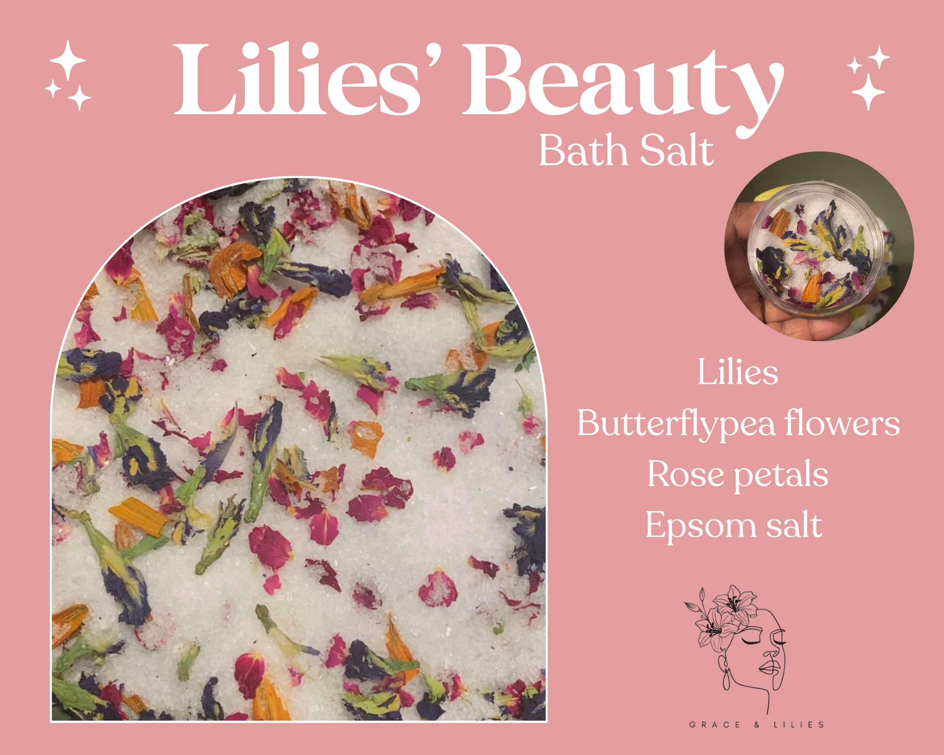 Lilies' Beauty Bath Salt | "Consider how the wildflowers grow. They do not labor or spin... yet not even Solomon in all his splendor was dressed like one of these." Luke 12:27